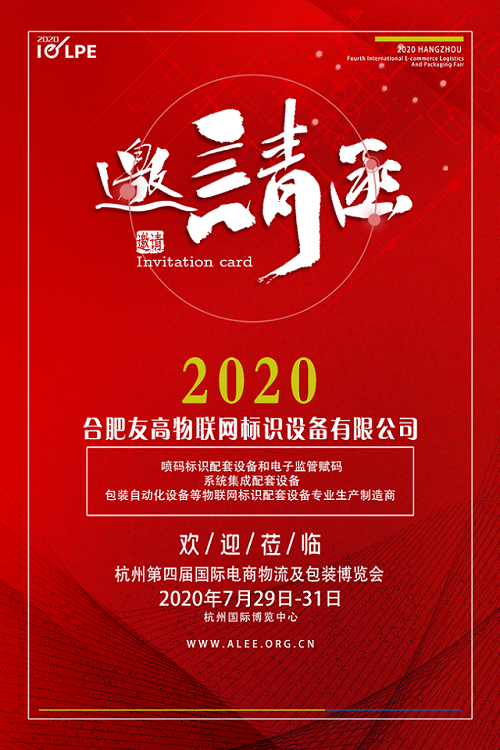 本次展會,我公司由總經(jīng)理陳文正先生帶隊受邀參加“2020杭州國際電商物流及包裝展覽會”同期出席“一物一碼解決方案”演講主題“一物一碼,物聯(lián)世界”屆時合肥有高的工作人員會C館恭候您的光臨,我們誠摯的歡迎業(yè)內(nèi)朋友過來交流!