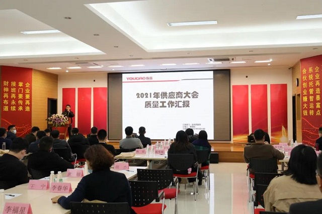 他提到,質(zhì)量是一切的基礎(chǔ),沒有質(zhì)量更談不上企業(yè)的品牌、發(fā)展、競(jìng)爭(zhēng)。友高一直高度重視產(chǎn)品質(zhì)量問題,并對(duì)此設(shè)定了質(zhì)量目標(biāo),管控要求等;結(jié)合以往的供應(yīng)體會(huì),他現(xiàn)場(chǎng)還分享了一些個(gè)人的質(zhì)量管理經(jīng)驗(yàn),倡導(dǎo)大家在“誠信”的基礎(chǔ)上,把好任何一件產(chǎn)品,一個(gè)零部件的質(zhì)量關(guān),實(shí)現(xiàn)合作共生,以此更好成就客戶。