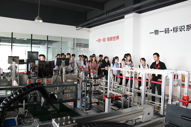 友高工作人員詳細(xì)講解了行業(yè)的發(fā)展歷程,從一物一碼的概念到落地應(yīng)用到發(fā)展方向再到國家政策等,在新規(guī)劃的RFID館、視覺系統(tǒng)館和標(biāo)識系統(tǒng)館,全面解讀“標(biāo)”與“識”的具體應(yīng)用,而該內(nèi)容的填充也正是對一物一碼應(yīng)用落地的補充和完善,同學(xué)們都紛紛駐足觀看與記錄。