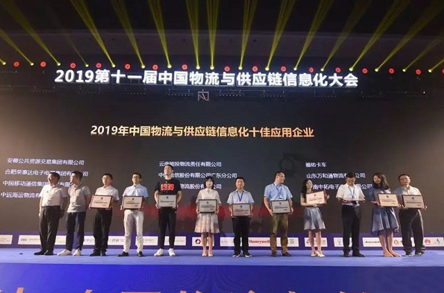 2019中國(guó)物流與供應(yīng)鏈信息化十佳應(yīng)用企業(yè)獲獎(jiǎng)合影