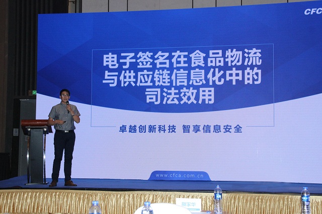 來(lái)自中國(guó)金融認(rèn)證中心產(chǎn)品方案總監(jiān)孫志峰先生現(xiàn)場(chǎng)分享了《電子簽名在食品物流與供應(yīng)鏈信息化中的司法效用》的主題內(nèi)容,分享了電子簽名的業(yè)務(wù)與司法、私鑰控制以及電子簽章方案的整體架構(gòu)等。