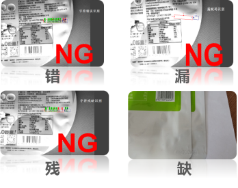 由于生產(chǎn)環(huán)境及賦碼設(shè)備等的諸多因素影響,賦碼過程中難免會(huì)出現(xiàn)“錯(cuò)、漏、殘、缺”的噴印內(nèi)容,給企業(yè)造成了很大的困擾。例如激光機(jī)在賦碼過程中由于焦距變化會(huì)導(dǎo)致個(gè)別字符缺失或不清晰;噴碼機(jī)會(huì)存在飛點(diǎn)情況;由于產(chǎn)品種類特別多,粘性大、有靜電、模切黏連,或者人員調(diào)試問題都會(huì)導(dǎo)致傳感器存在誤觸發(fā)。