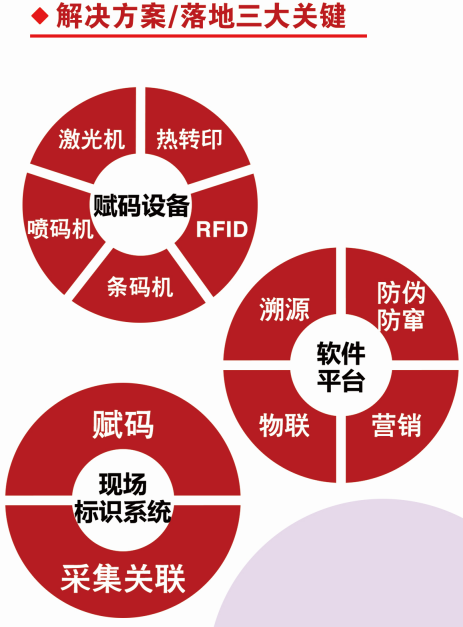 通過(guò)軟件平臺(tái)可以建立一物一碼的溯源系統(tǒng)、防偽防竄貨系統(tǒng)、營(yíng)銷(xiāo)系統(tǒng)等,讓產(chǎn)品的“碼”發(fā)揮作用。