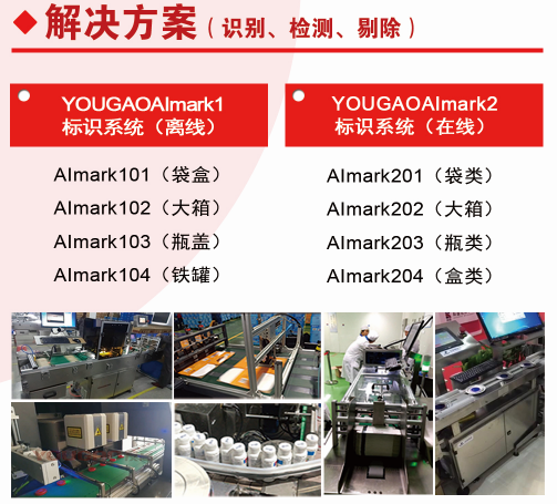 友高爆品AImark智能標識系統(tǒng)針對不同產(chǎn)品的包裝形式、生產(chǎn)線(離線/在線)都做了細分,為每個需要做生產(chǎn)日期檢測的企業(yè)提供最全面的解決方案。