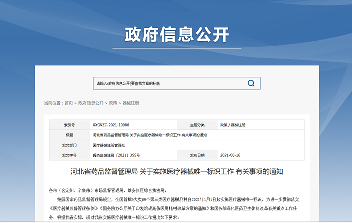 河北產(chǎn)第三類(lèi)醫(yī)療器械產(chǎn)品全部納入唯一標(biāo)識(shí)實(shí)施范圍!