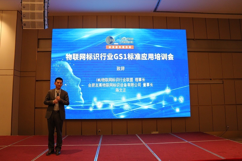 合肥友高物聯(lián)網(wǎng)標(biāo)識(shí)設(shè)備有限公司董事長(zhǎng)、IMU物聯(lián)網(wǎng)標(biāo)識(shí)行業(yè)聯(lián)盟理事長(zhǎng)陳文正做了致辭發(fā)言。
