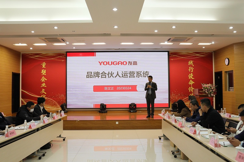 隨后,友高董事長陳文正先生進行了《品牌合伙人運營系統(tǒng)》的主題演講,他從市場、營銷、產品、售前、售后、價格保護、人才培訓等多方面詳細演示了友高完整的品牌合伙人運營系統(tǒng)。