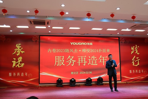 在發(fā)布會(huì)上,陳文正先生指出,2024合肥友高年度主題被定義為“服務(wù)再造年”。他表示,2024年對(duì)友高來(lái)說(shuō),有機(jī)遇也有挑戰(zhàn),因?yàn)椴还苁怯龅阶詈玫倪€是最壞的環(huán)境,只要在變中發(fā)展就是我們重拾機(jī)遇的一年?!傲⒆阈袠I(yè)幾十年,有眾多行業(yè)客戶對(duì)友高有著更高的期待與期遇,這些都促使著友高主動(dòng)求變,在變中找到屬于我們的機(jī)遇”。